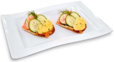 Dinamarca - Pão fatiado coberto com camarão, truta e ervas aromáticas Smørrebrød med rejer, ørred og krydderurter